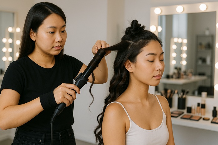 • Tóc đánh phồng và xịt cố định: Giữ dáng tóc lâu suốt buổi makeup – chụp ảnh – biểu diễn.